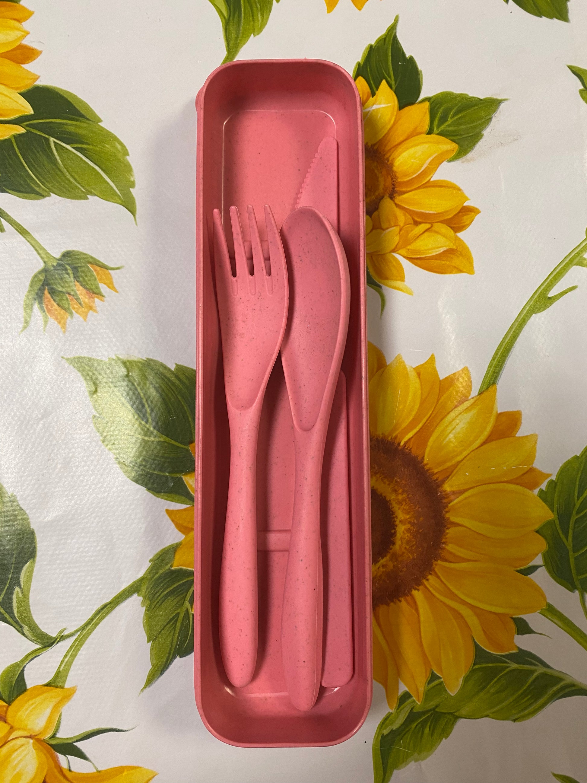 Included Knife, fork and spoon. Comes in 4 colours.